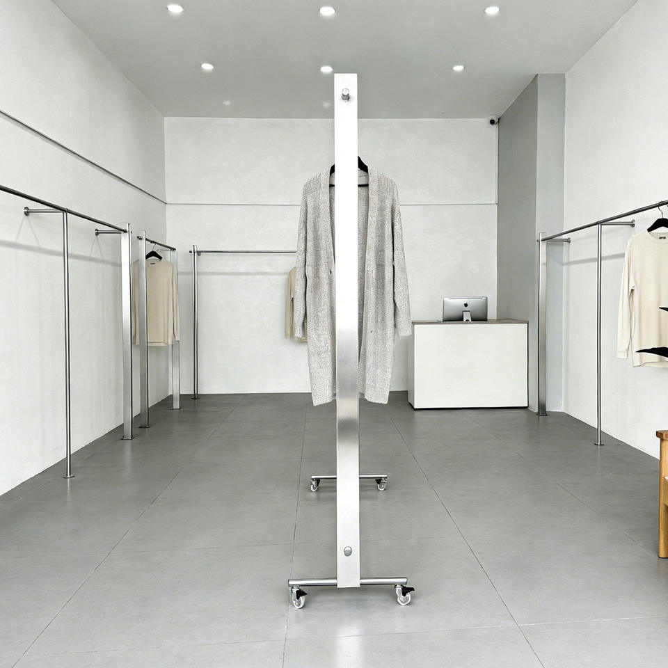 Expositor de Ropa Multifuncional de Acero Inoxidable con Ruedas, para Colgar Lateralmente, para Tiendas de Ropa Femenina