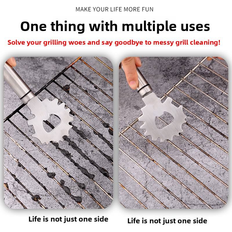 Herramienta de limpieza multifuncional de acero inoxidable para parrilla de barbacoa, con abridor de botellas, malla de cerdas, resistente al desgaste y duradera