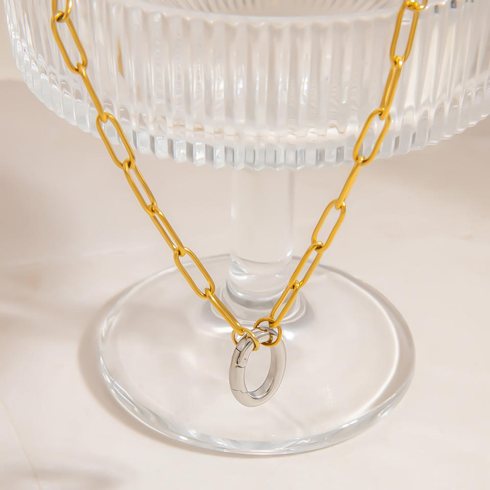 Collar de Acero Inoxidable, Diseño Geométrico en Bloques de Color Oro y Plata, Joyería Unisex