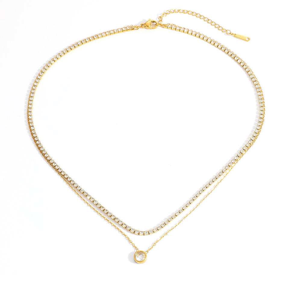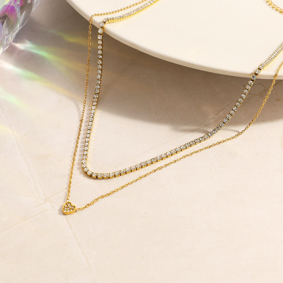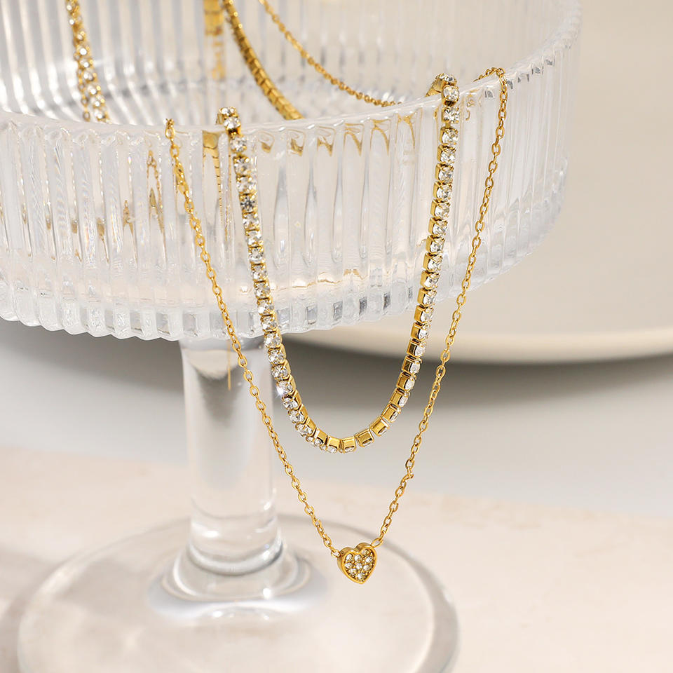 Collar de Acero Inoxidable con Colgante de Diamantes Apilables, Chapado en Oro de 18k, Forma de Corazón, Minimalista, de Lujo, Cadena para Clavícula, para Uso Diario