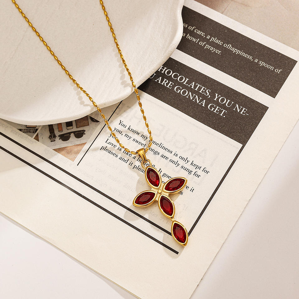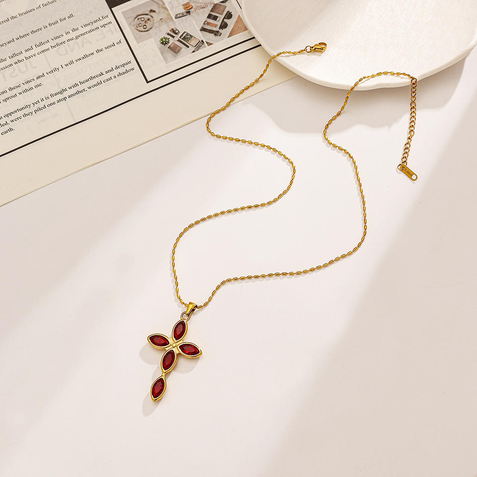 Collar de acero inoxidable con colgante de cruz de rubí, chapado en oro de 18 quilates, ajustable, para regalo.