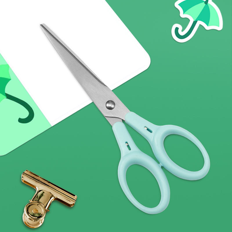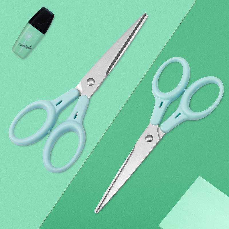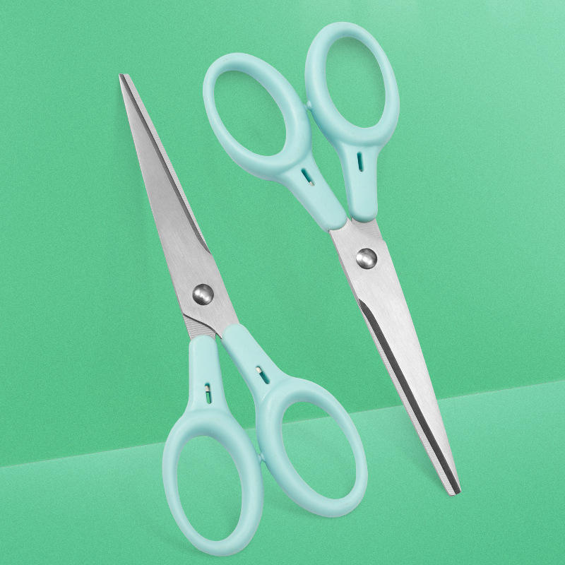 Tijeras de oficina de acero inoxidable con cabeza recta, color azul, para cortar papel en el hogar y manualidades DIY