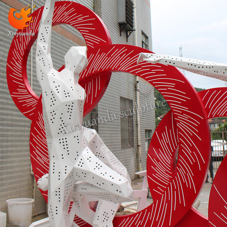Escultura Deportiva de Anillos Olímpicos de Acero Inoxidable | Arte Personalizado de Personajes Deportivos para Áreas Fotográficas de Estadios/Parques
