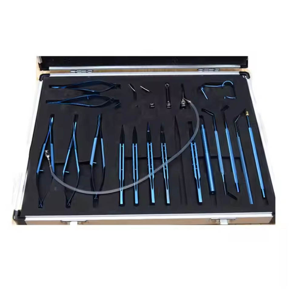 Juego de instrumentos oftálmicos de acero inoxidable para cirugía ocular, incluye tijeras de resorte, fórceps rectos, instrumentos quirúrgicos básicos