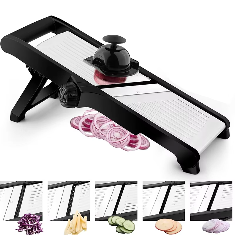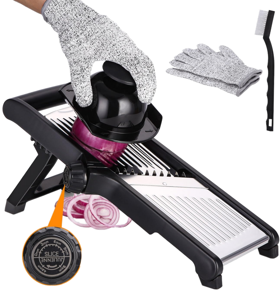 Mandolina Manual Multifuncional de Acero Inoxidable y PP, Cuchillo de Cocina Ajustable, Rallador, Rebanador de Patatas y Cebollas, Guantes Anticorte