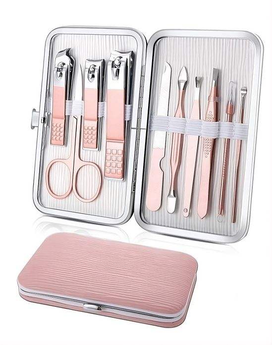 Kit de Pedicura de Acero Inoxidable, Lima de Uñas, Cortaúñas, Empujador, Pinzas, Juego de Instrumentos de Cuidado de Belleza con Estuche con Cierre, 11 Piezas