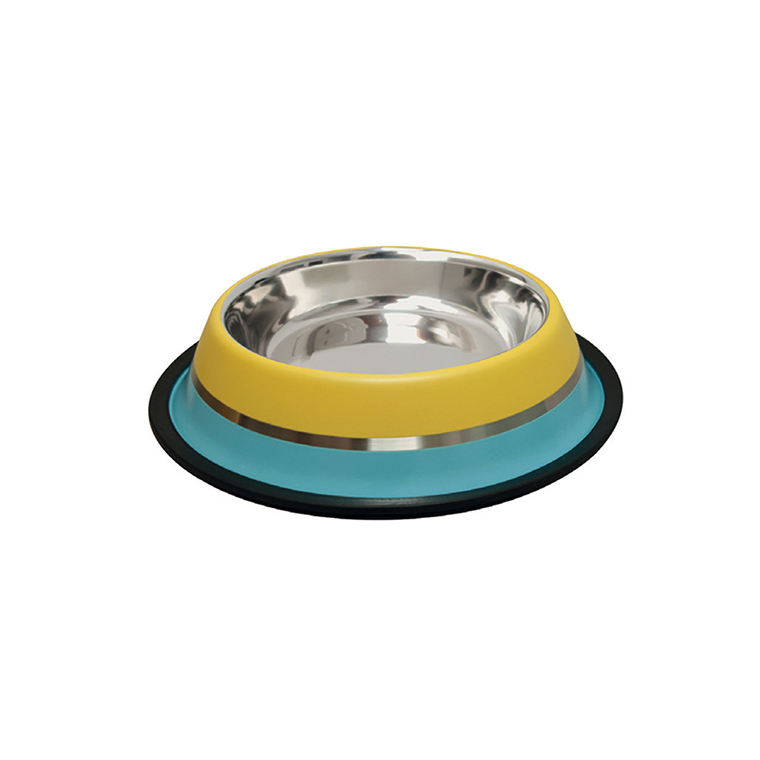 Comederos y cuencos de acero inoxidable para mascotas modelo S color amarillo/azul