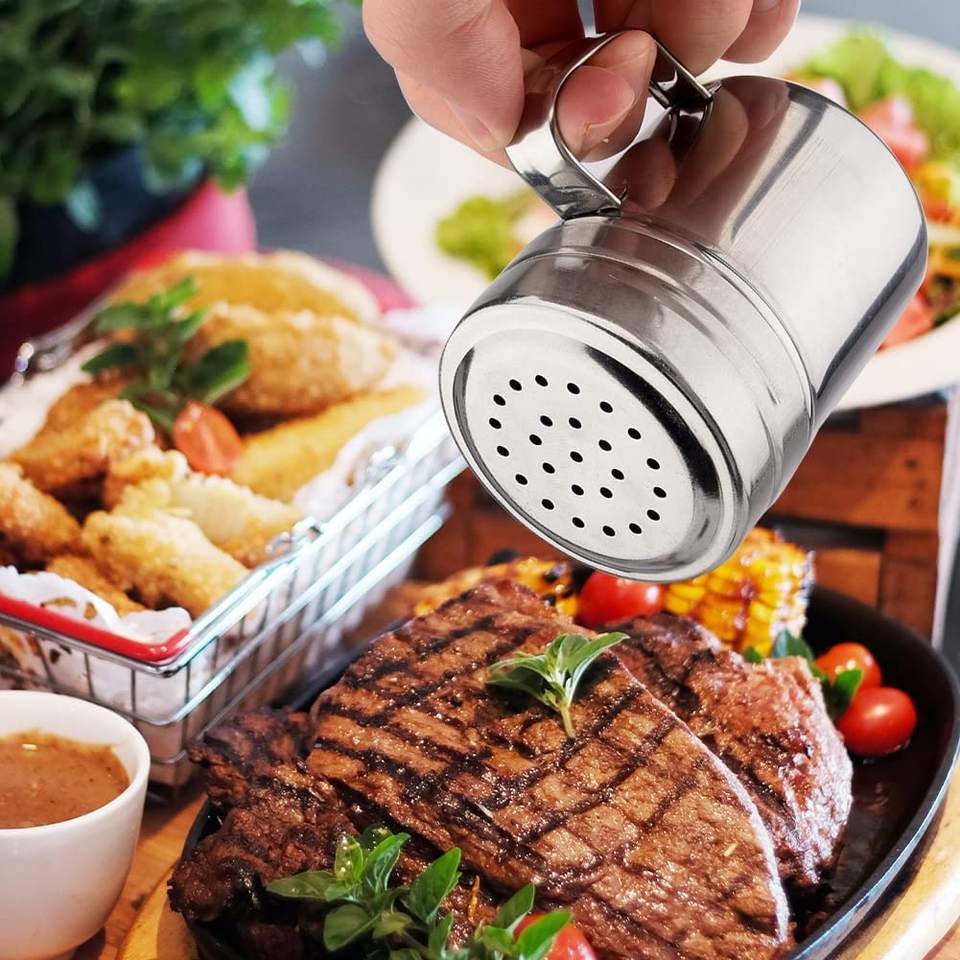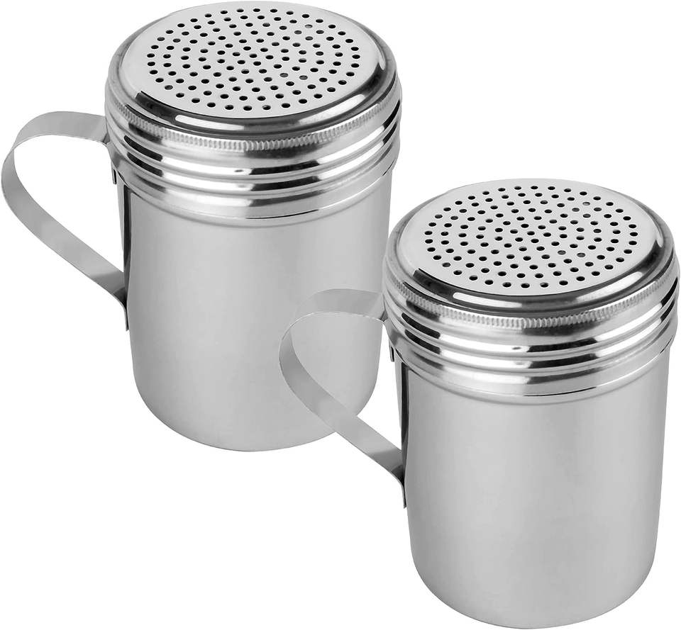 Tarro agitador de polvo de acero inoxidable con asa para puré de pimienta, dragado de chocolate y cacao, precios baratos, Material metálico de calidad