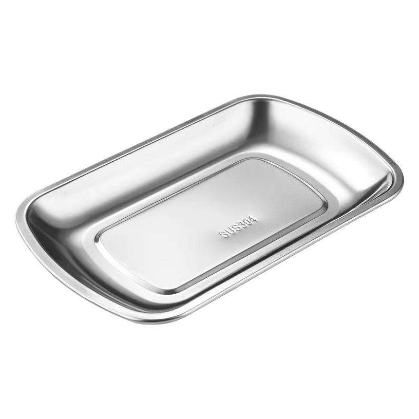 Stainless Steel Rectangular Serving Tray 304 Food Grade Hotel Coffee Tea Dish Gold Silver Color Shallow Plate