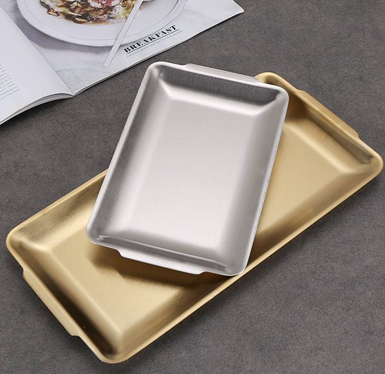 Bandeja Rectangular de Acero Inoxidable, Plato de Metal Dorado y Plateado para Servir Comida de Barbacoa, Restaurante, Sushi, Filetes