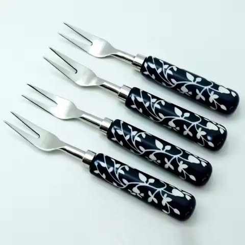 Juego de Cubiertos de Acero Inoxidable y Resina Ecológicos para Servir en Bodas con Pulido Espejo, 4 Piezas con Mango Largo