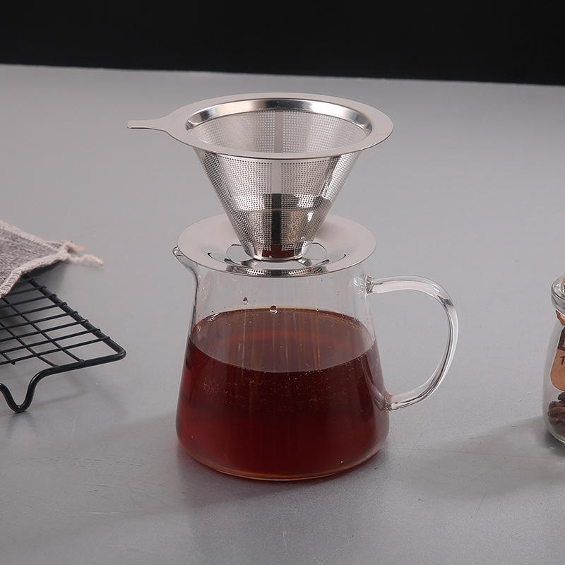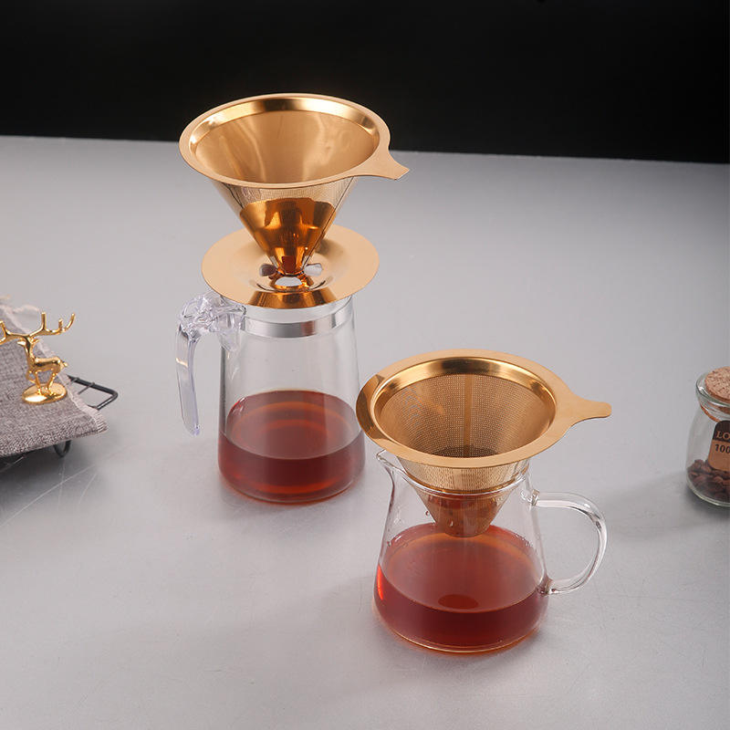 Filtro de café reutilizable de acero inoxidable, cono sin papel con asa para el hogar, oficina, viajes y camping