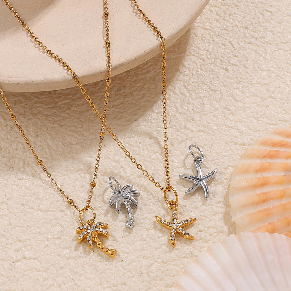 Colgantes de acero inoxidable con diamantes de imitación de formas mixtas para hacer collares Verano 2025 PJ566-580
