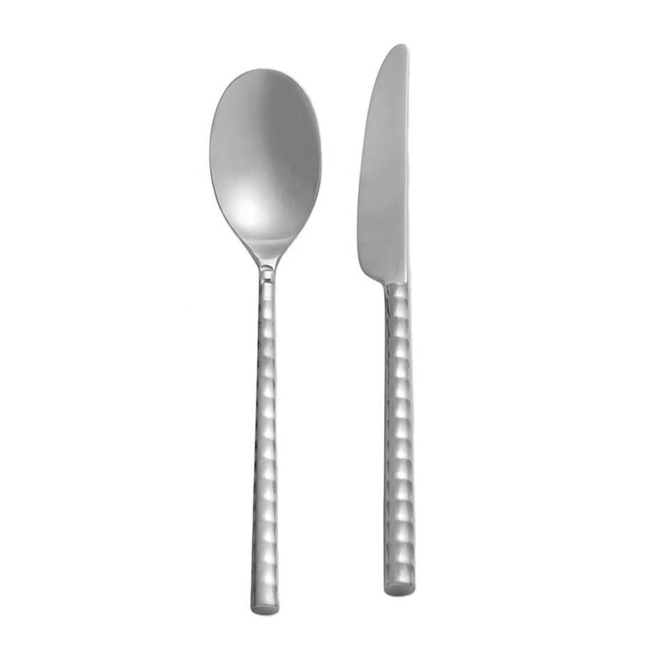 Juego de cubiertos de mango redondo acanalado de acero inoxidable juego de cubiertos de cocina de primer caballo de acero inoxidable real