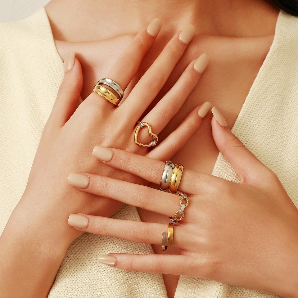 Anillo de Acero Inoxidable con Forma de Corazón, Diseño Geométrico Chapado en Oro de Dos Tonos, Joyería Unisex para Regalo