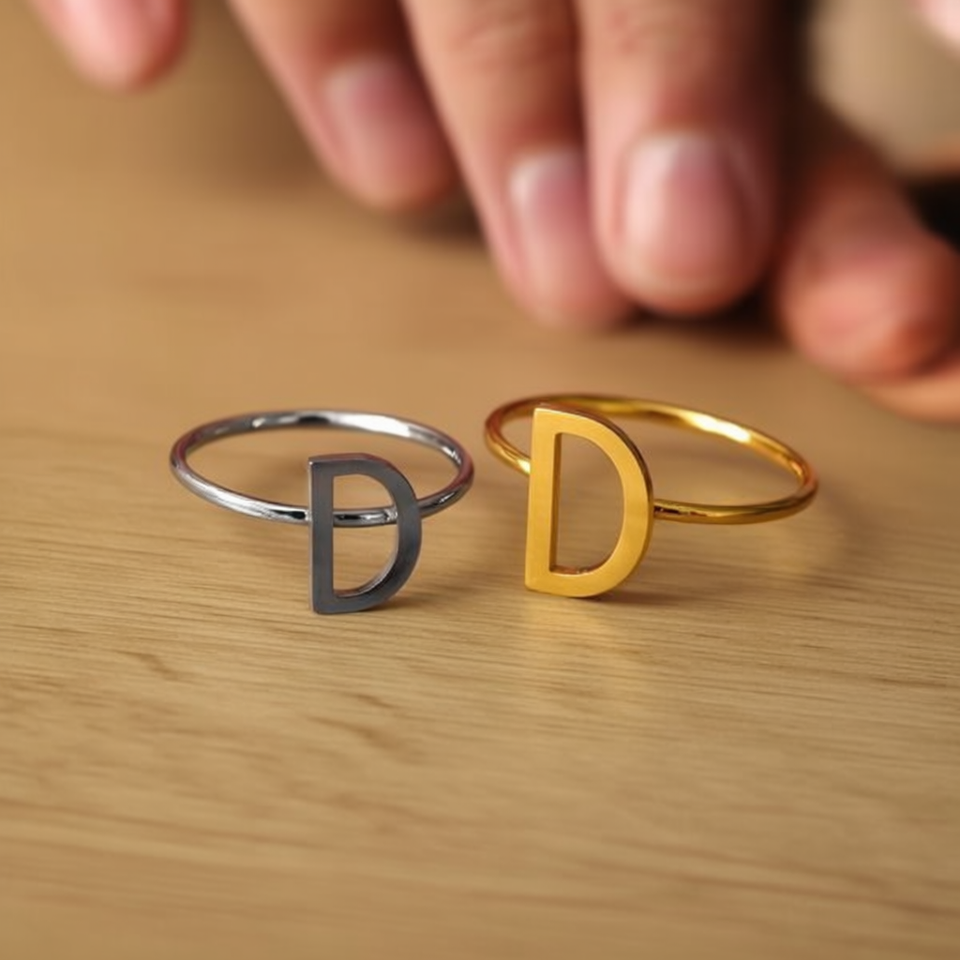 Anillo de acero inoxidable con letra D, abierto y ajustable, joyería de moda para mujeres y hombres