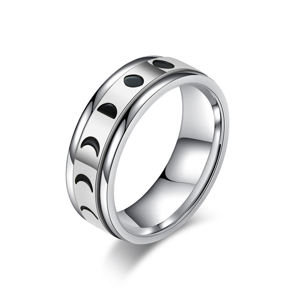 Anillo giratorio de acero inoxidable para aliviar la ansiedad, diseño de fase lunar, joyería unisex para aliviar el estrés, regalo, talla 8