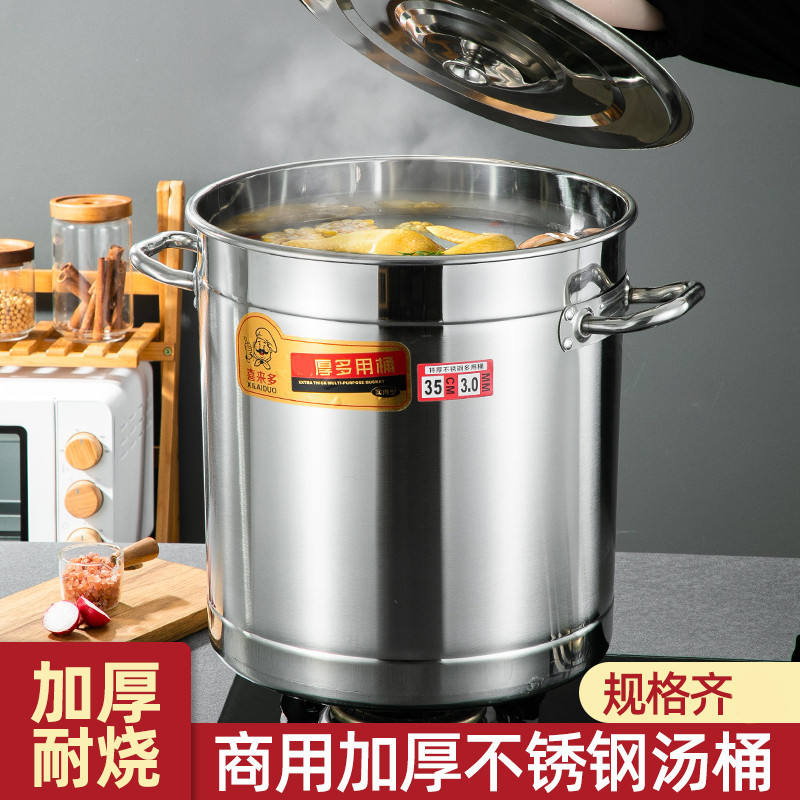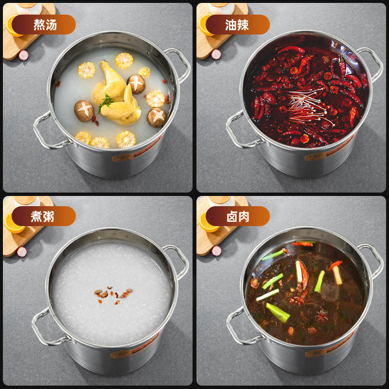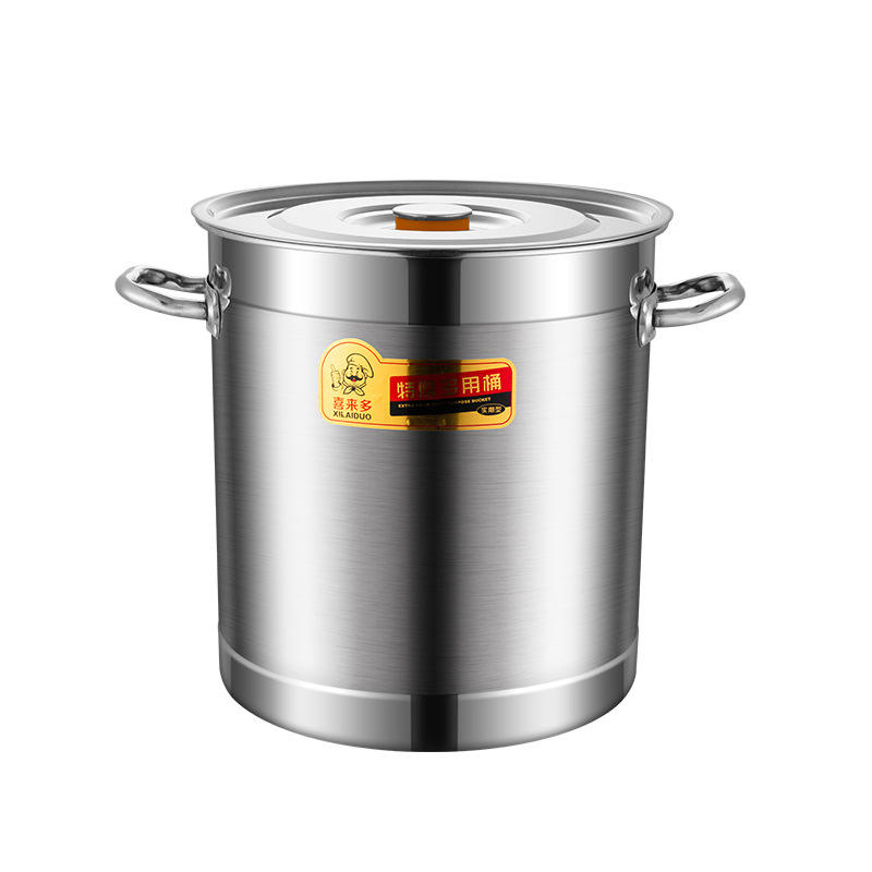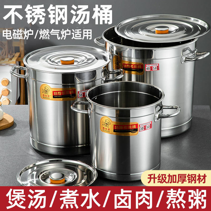 Olla Redonda de Acero Inoxidable con Tapa, Gran Capacidad, Olla Comercial Reforzada para Sopa, Guisos y Estofados, Uso Doméstico