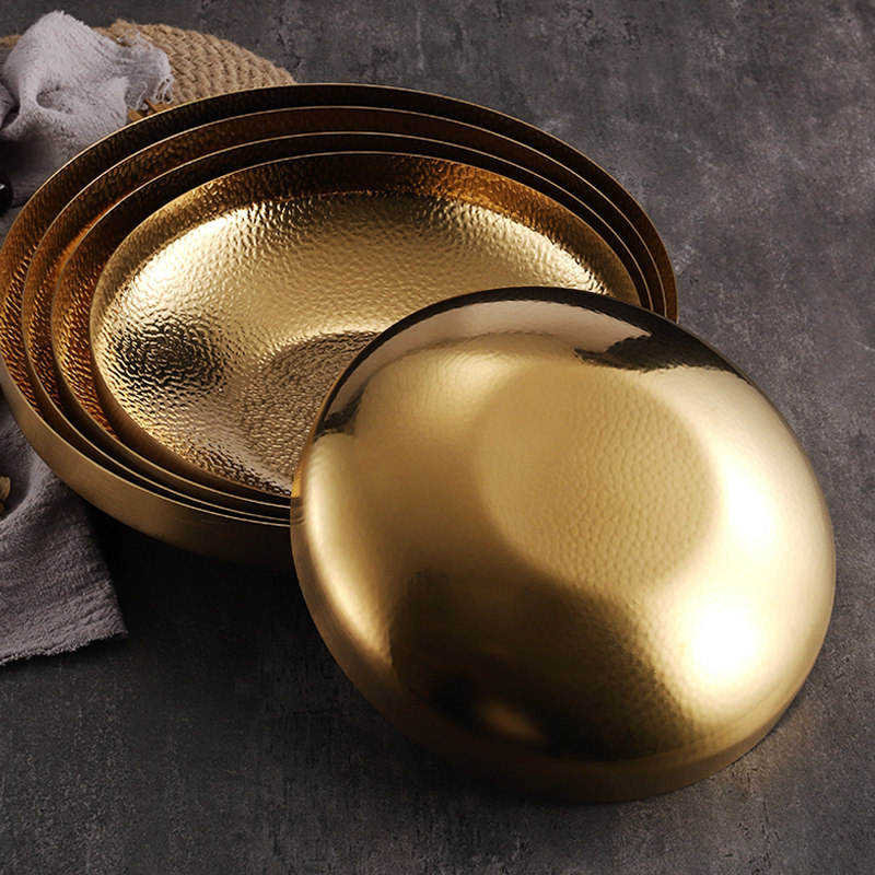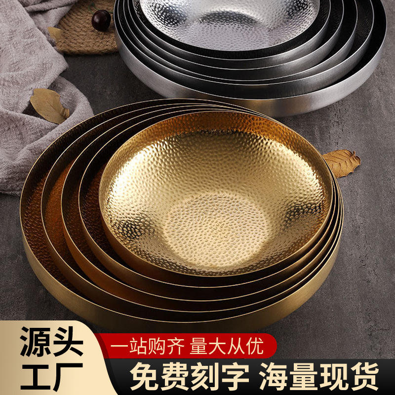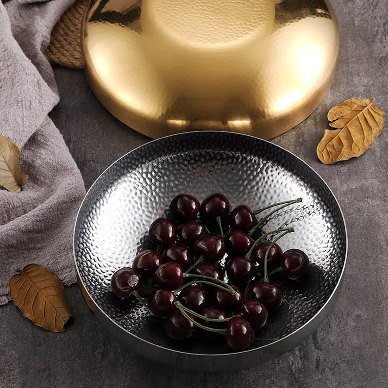 Plato hondo redondo de acero inoxidable 304 con acabado martillado, plato para servir para fiestas, hogar y cocina.