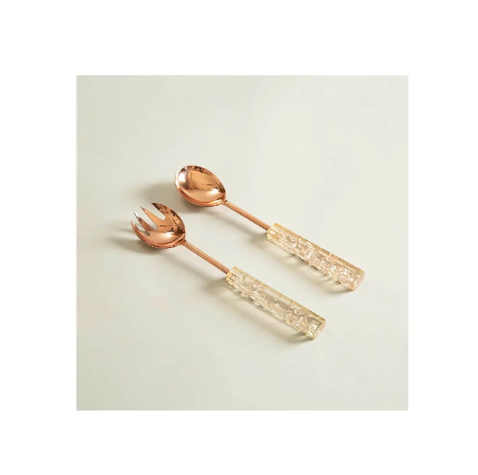 Servidor de ensalada de acero inoxidable, mango hecho a mano, vajilla de lujo para hotel y restaurante, servidor de ensalada de lujo al mejor precio