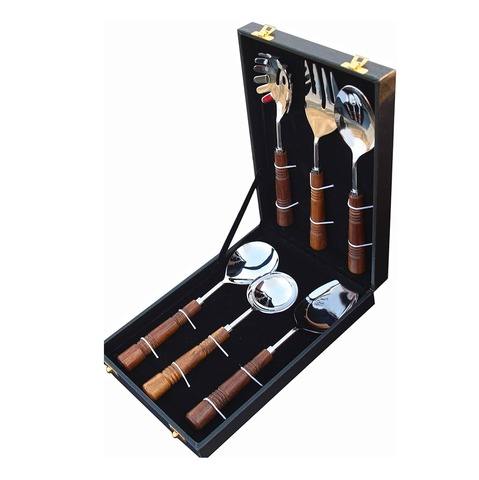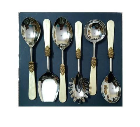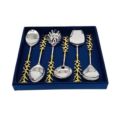 Juego de cucharas de servidor de ensalada de acero inoxidable, manualidades con mango elegante para regalo de boda, juego de 6 piezas