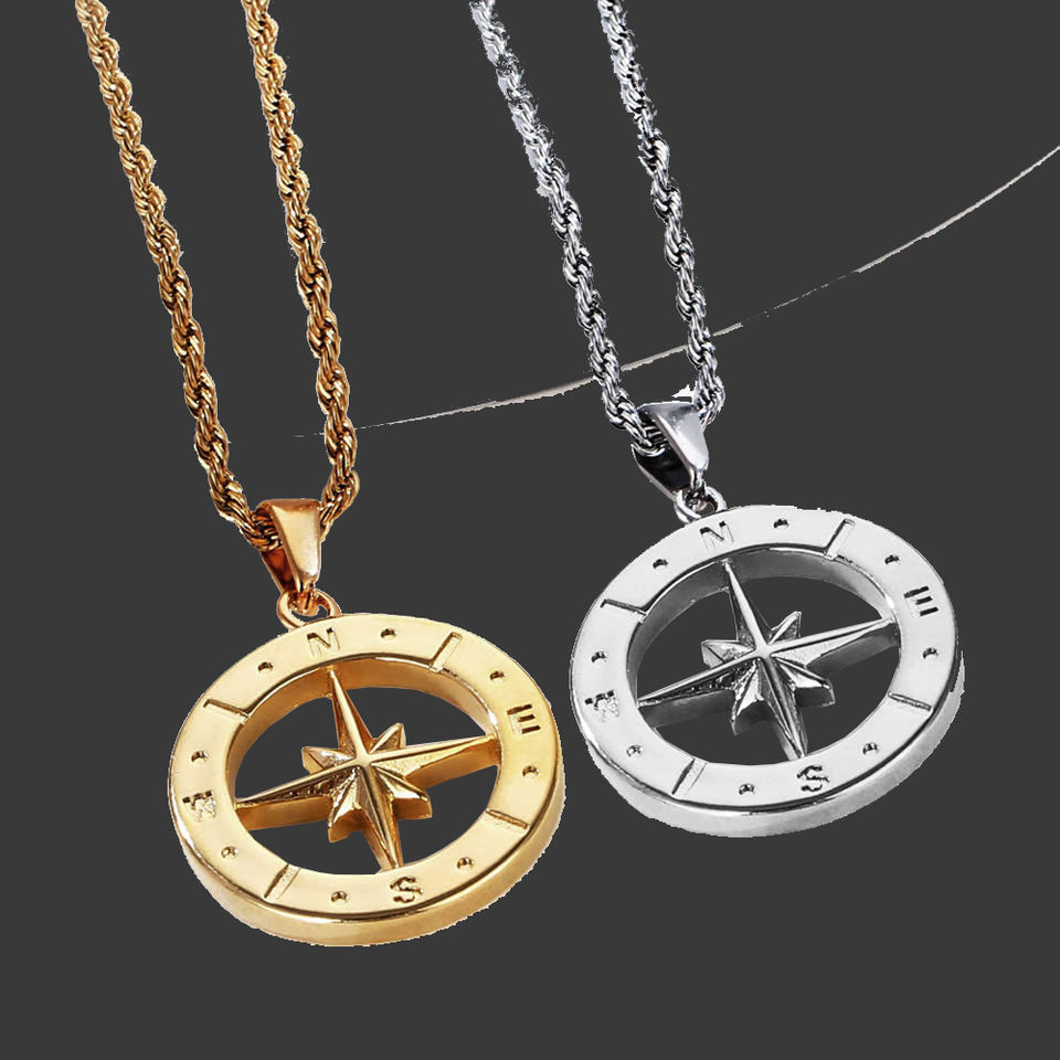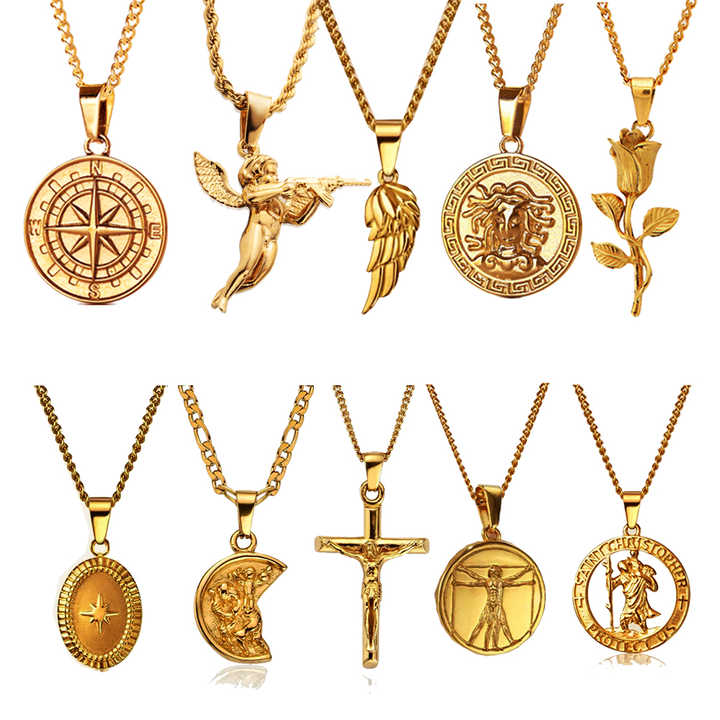 Collar con Colgante de Brújula Marina de Acero Inoxidable, Amuleto de Medusa, Crucifijo de Oro de 18K, Collar 3D con Pistola de Venganza y Ángel, Estilo Punk para Hombres y Mujeres