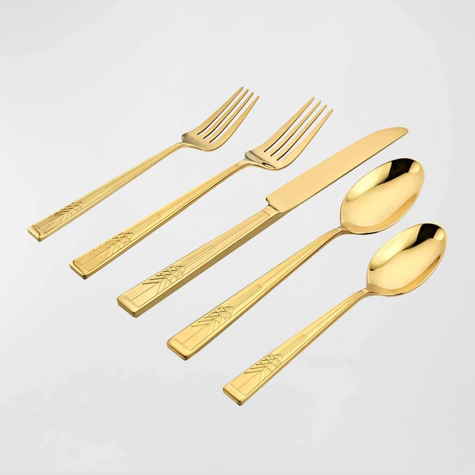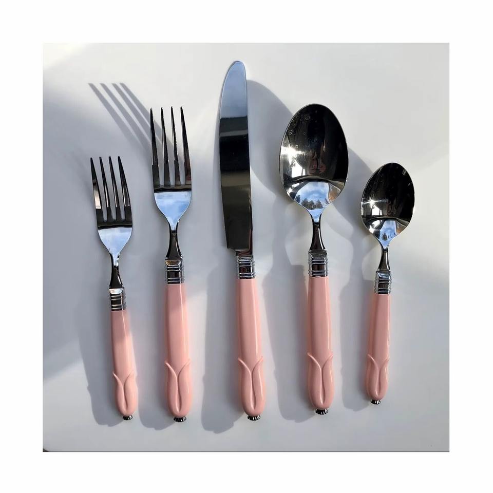 Juego de 5 cubiertos de acero inoxidable Ideal para cocina, regalos de mesa, uso doméstico, cubiertos chapados en Color plateado, mango de diseñador de 2 colores