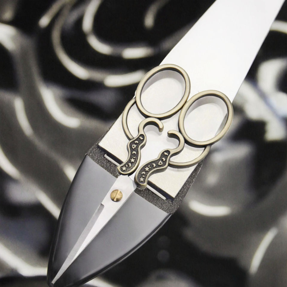 Tijeras de Peluquería Profesionales Pequeñas y Afiladas de Acero Inoxidable, Color Oro Rosa, con Bordado Vintage