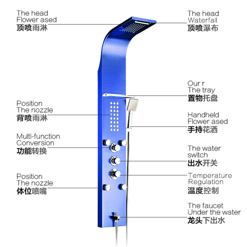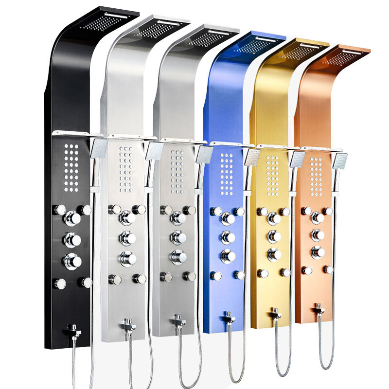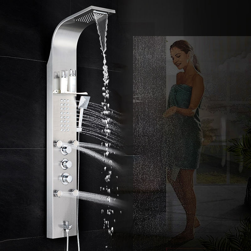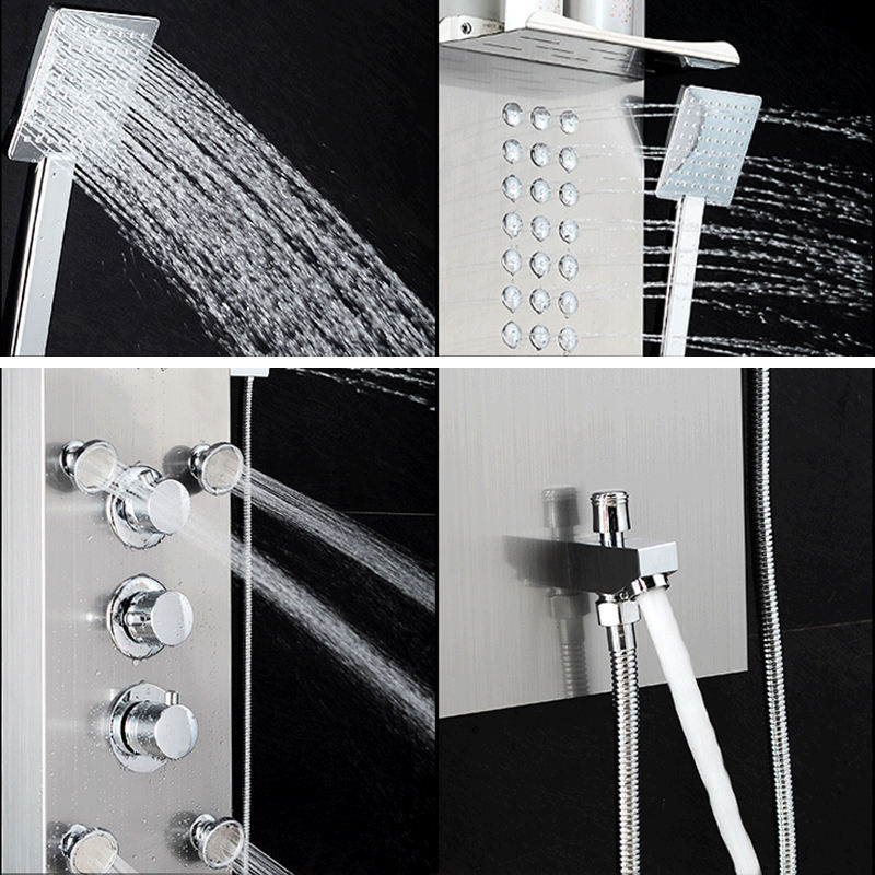 Panel de ducha de acero inoxidable, sistema de masaje de cascada de lluvia y boquilla de bañera, 6 funciones, accesorios de ducha de baño