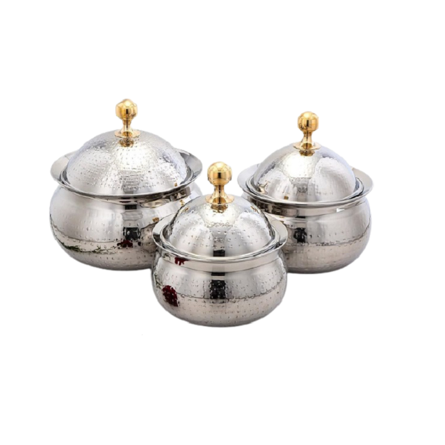Olla Caliente para Servir Alimentos de Acero Inoxidable Color Plata con Perillas de Latón, Olla Caliente de Primera Calidad a Precio de Mayorista