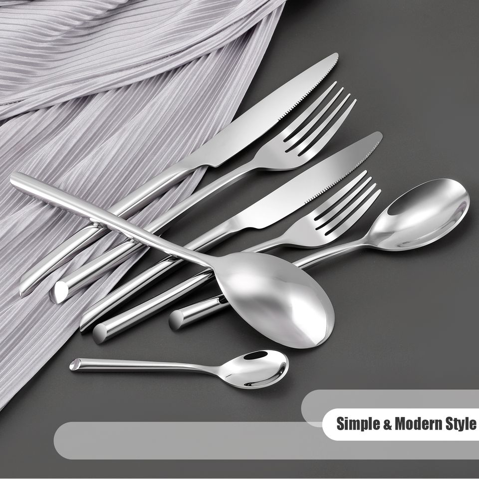 1 juego incluye:1 cuchillo de mesa, 1 cuchara de mesa, 1 tenedor de mesa, 1 cucharilla, 1 tenedor para ensalada
