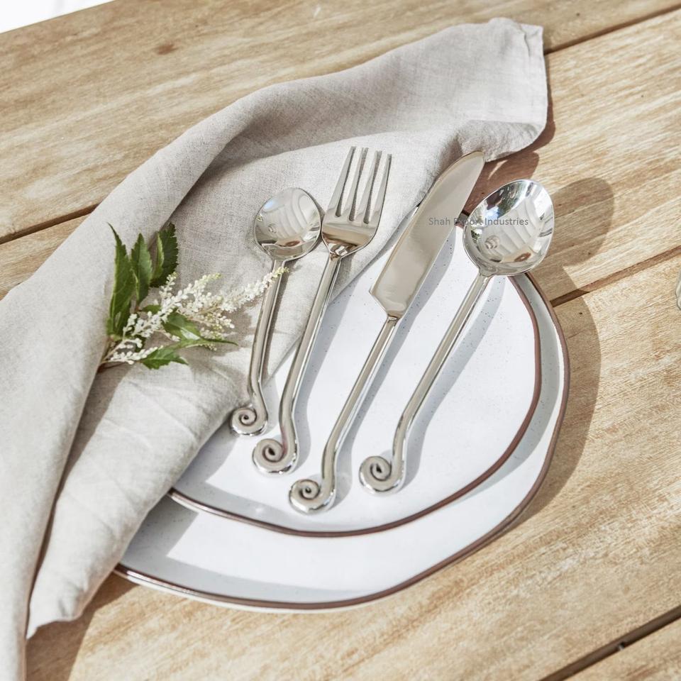 Juego de cubiertos de plata de acero inoxidable con mango en espiral giratorio para restaurantes y hoteles Juegos de cubiertos de mesa