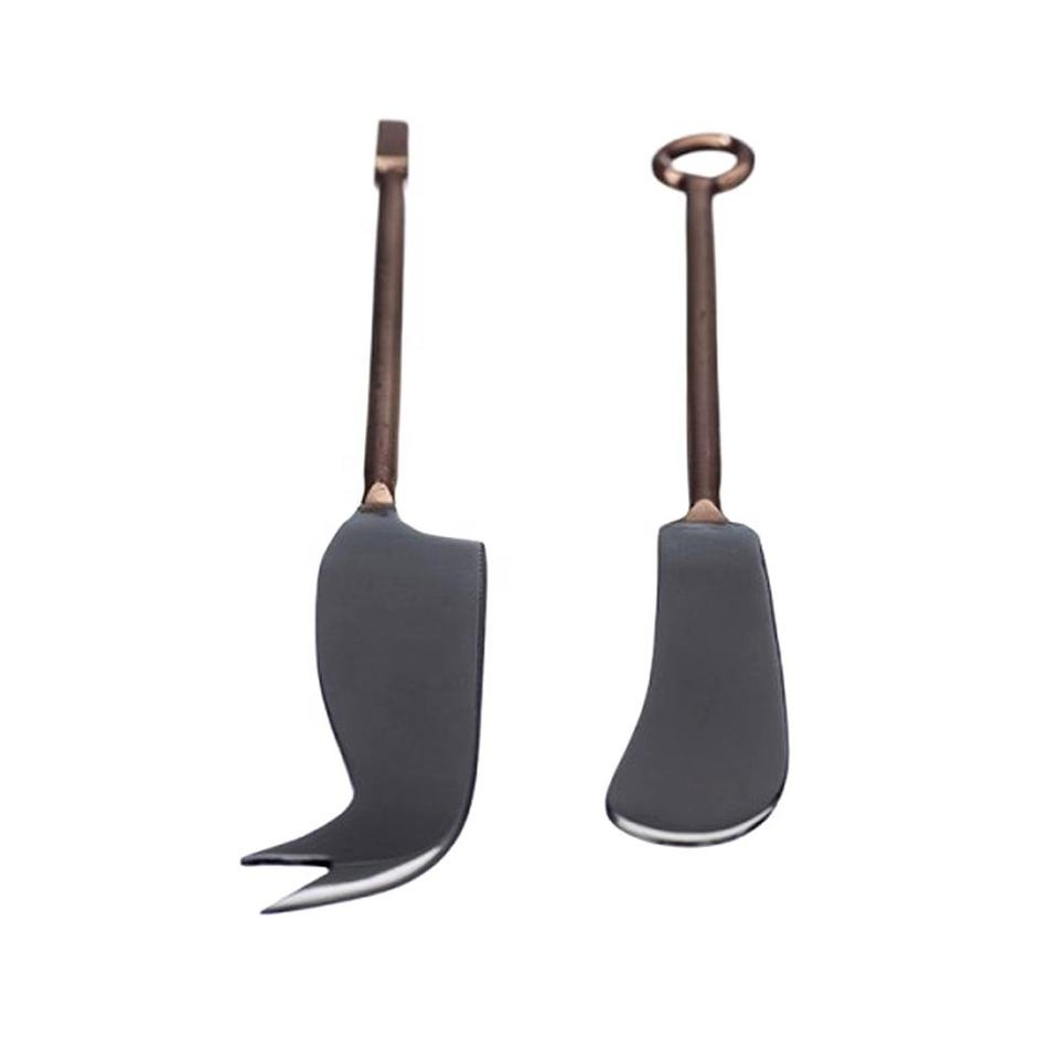 Vajilla chapada en plata de acero inoxidable, cuchillo y esparcidor de queso con mango rústico, juego de esparcidores de cuchillos de queso bonitos