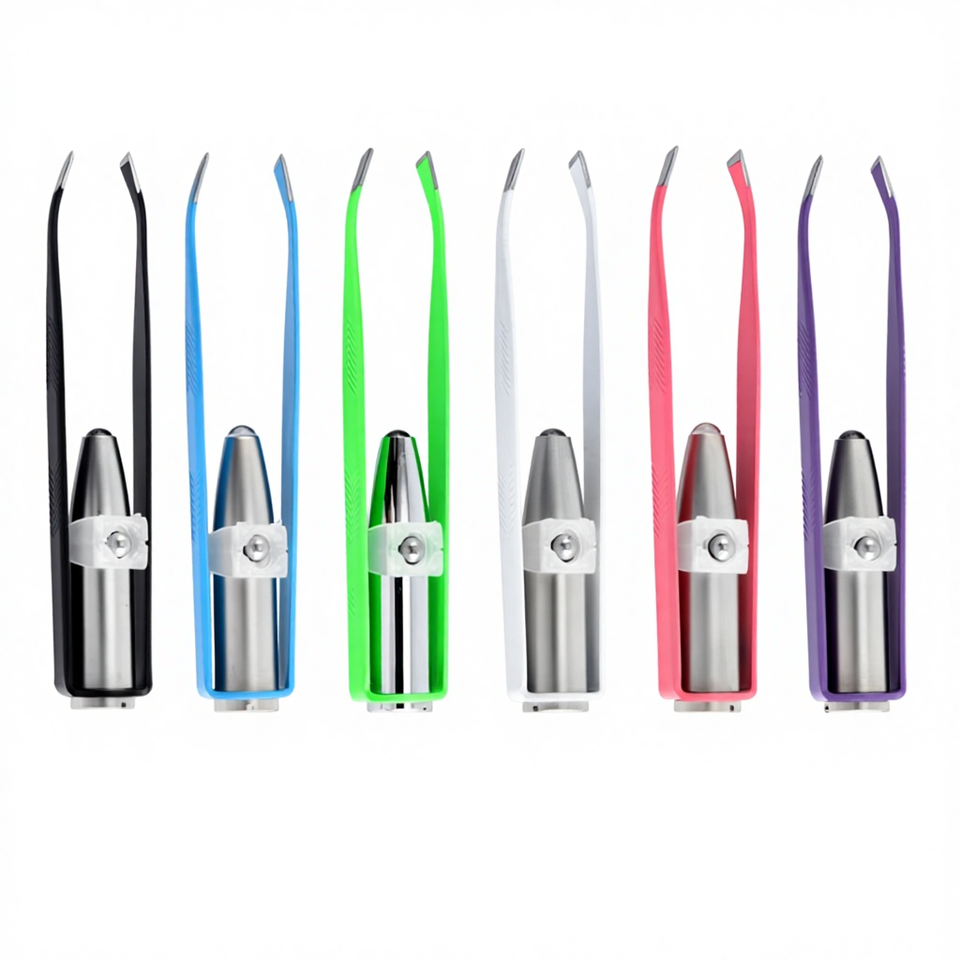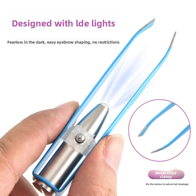 Pinza de Cejas Inclinada de Acero Inoxidable con Luz LED para Recortar y Maquillar