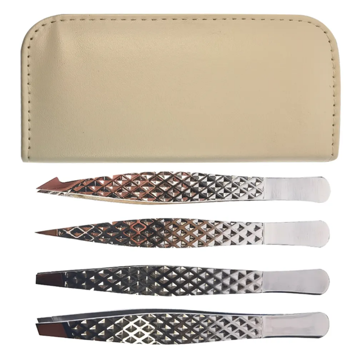 Juego de pinzas para extensión de pestañas con punta inclinada de acero inoxidable, pinzas para cejas con pinzas para pestañas de acero inoxidable