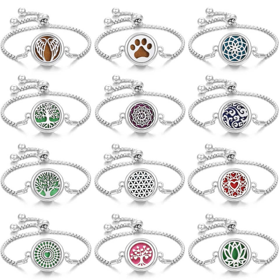 Pulsera de Aromaterapia de Acero Inoxidable con Botón Deslizante, Caja Circular de 25 mm, Ajustable, con Perfume de Larga Duración
