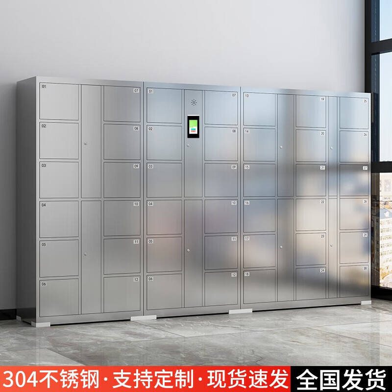 Casillero Inteligente de Acero Inoxidable con Reconocimiento Facial, Tarjeta, Huella Dactilar, Contraseña, Almacenamiento Móvil, Tipo Rectangular
