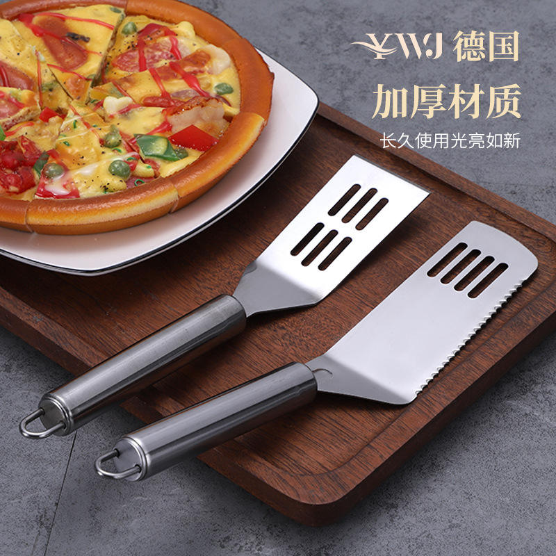 Juego de espátulas de acero inoxidable, 2 uds., boca plana engrosada con orificios para cocinar en la cocina, manipulación de carne y pizza