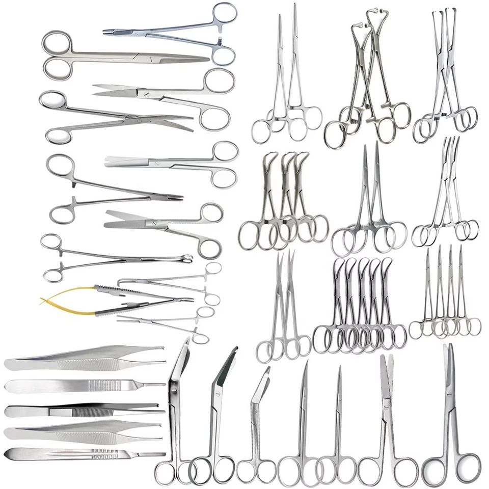 Juego de Instrumentos Quirúrgicos Veterinarios Básicos de Acero Inoxidable de 41 Piezas para Laparotomía Mayor, Cirugía General, Pediátrica y Torácica Menor