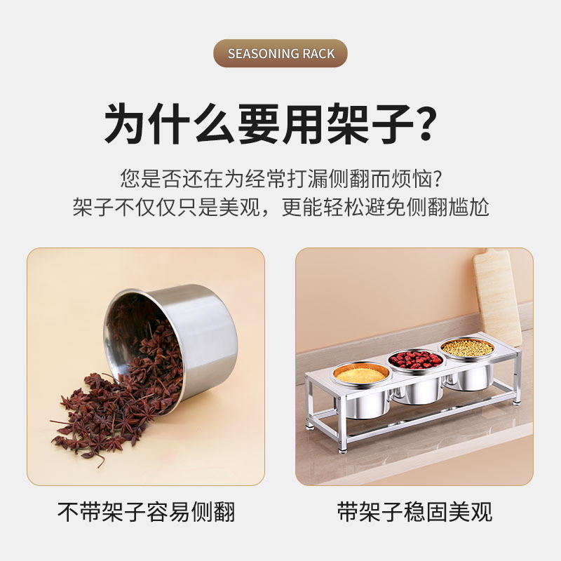 Estante para especias de acero inoxidable, de una sola fila y 3 compartimentos, contenedor de almacenamiento de condimentos para cocina, para uso comercial