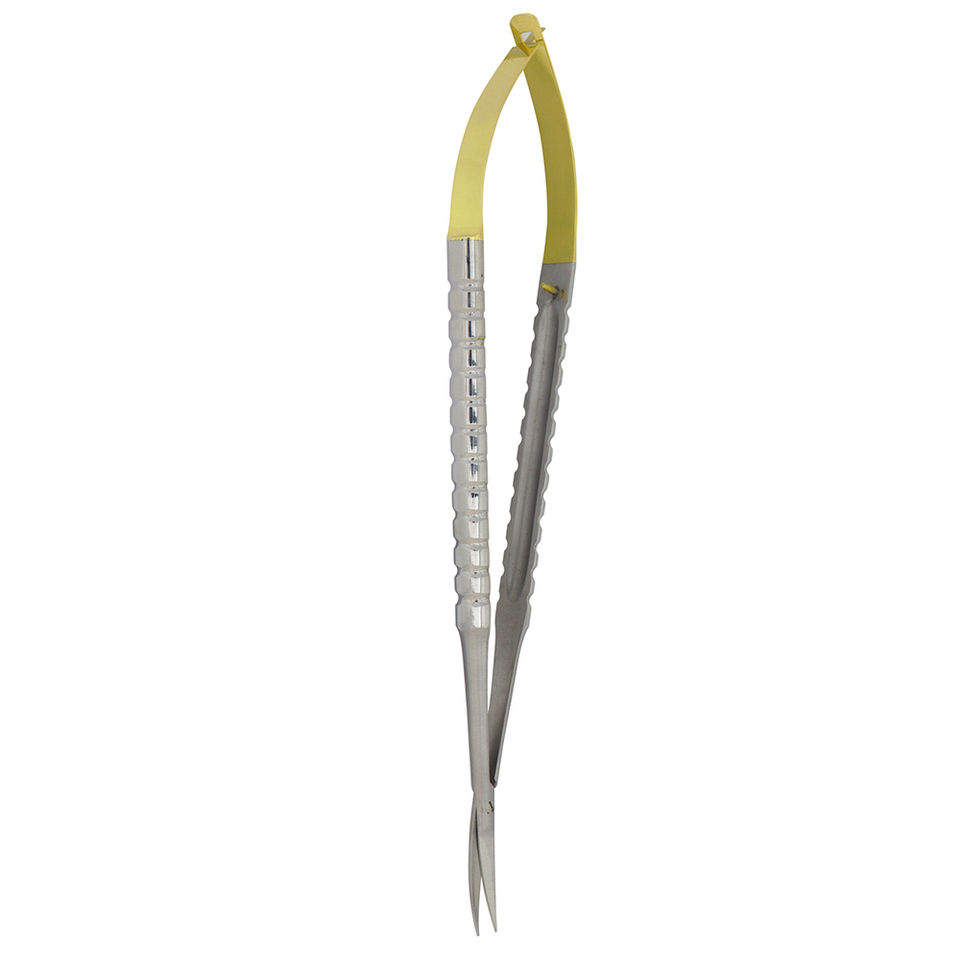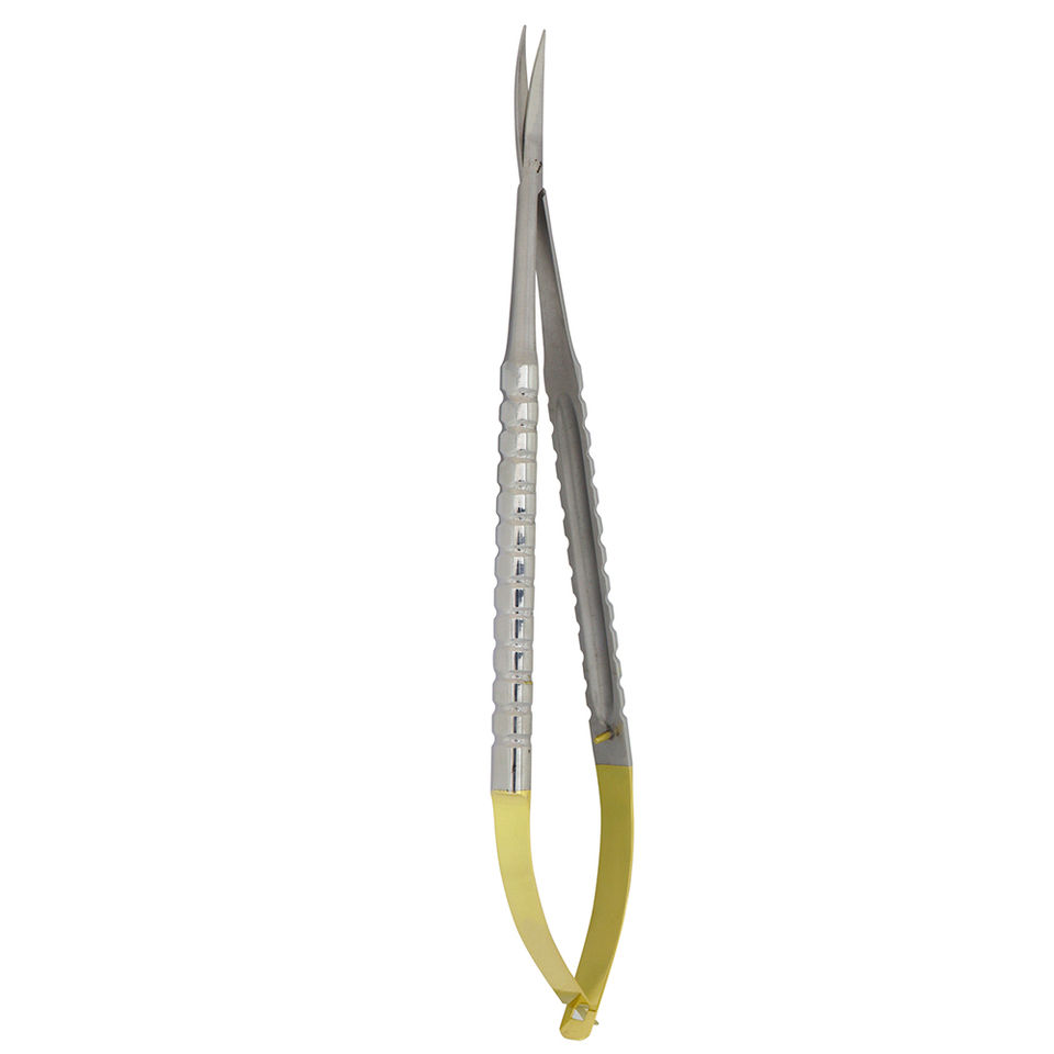 Tijeras Microquirúrgicas Manuales de Acero Inoxidable con Resorte, 4.5cm, Borde Curvo Dorado, Precisión Quirúrgica, Alta Calidad, Uso Médico