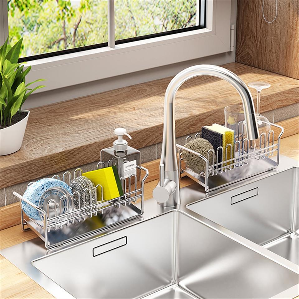 Estante de Cocina de Acero Inoxidable con Drenaje, Estilo Moderno, de Doble Nivel, para Guardar Paños