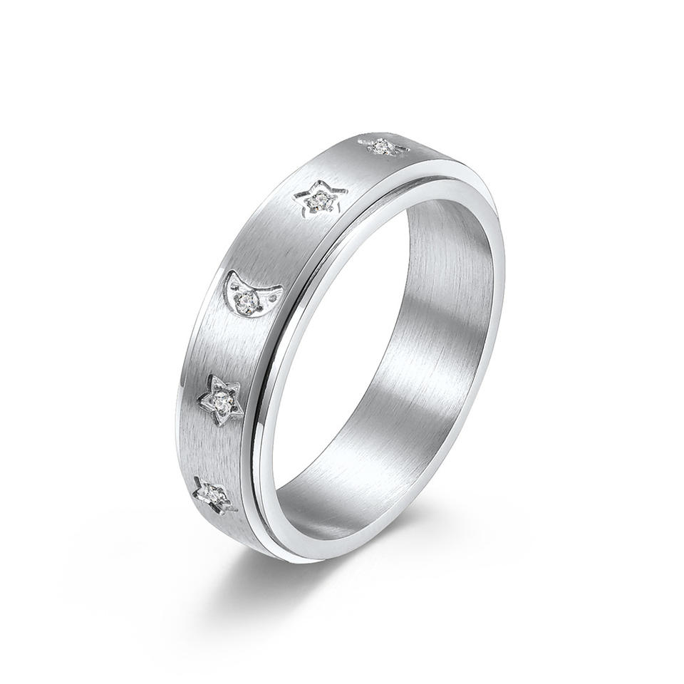 Anillo Giratorio de Acero Inoxidable con Diseño de Estrella y Luna, Anillo de Moda Unisex con Incrustaciones, Regalo de Joyería, K-R621