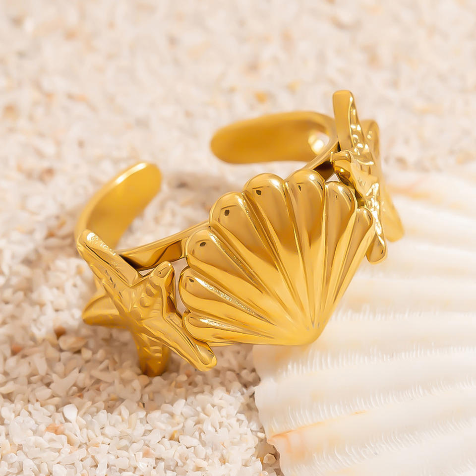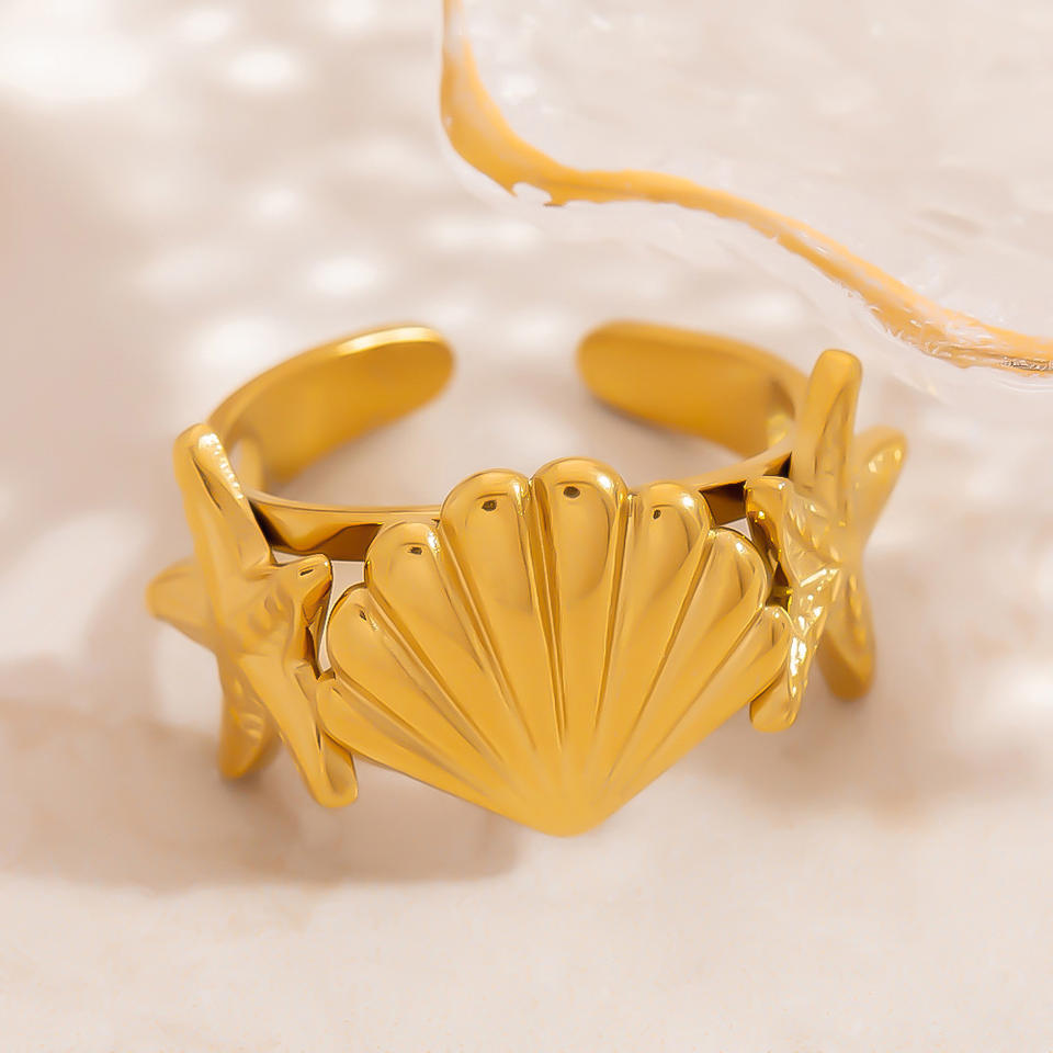 Anillo de Estrella de Mar de Acero Inoxidable, Chapado en Oro de 18K, Tema Oceánico, Joyería de Moda Unisex, Regalo