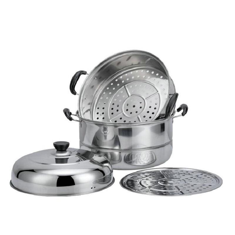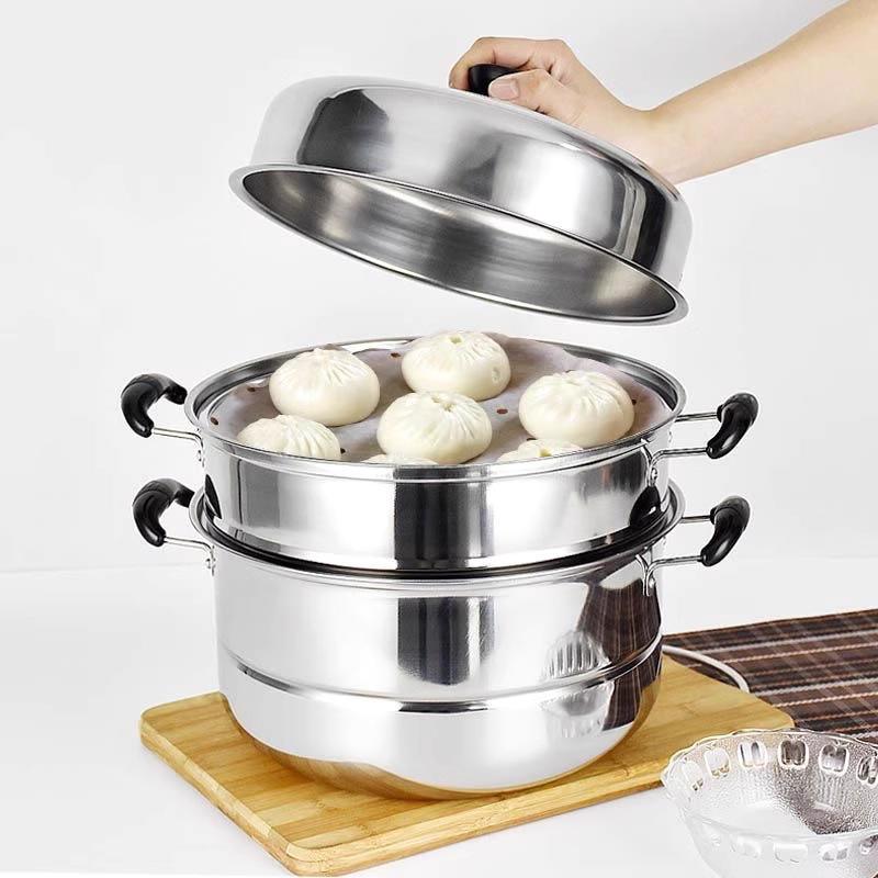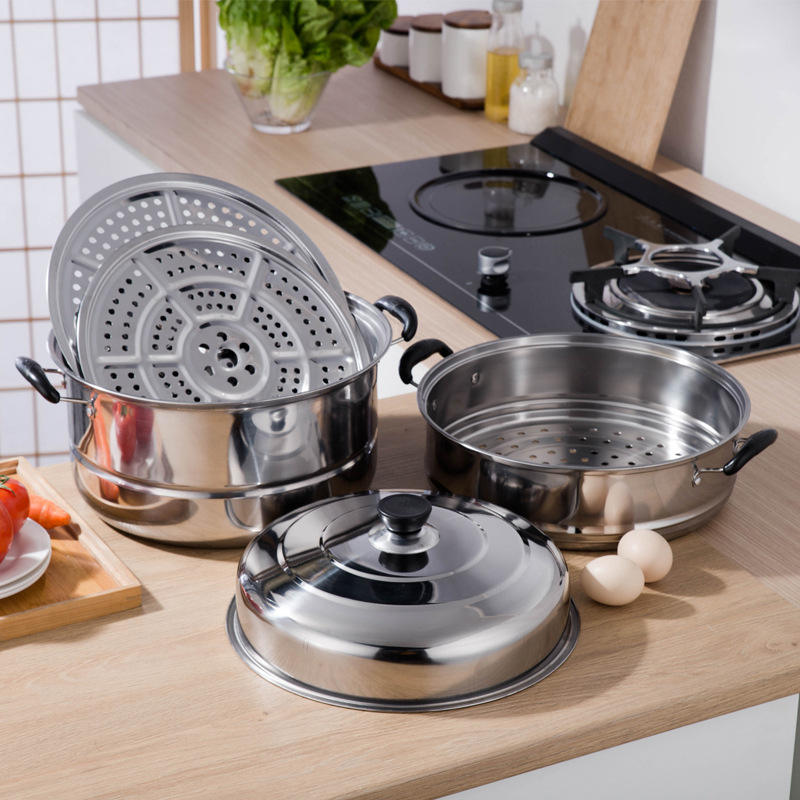 Vaporera de acero inoxidable de 3 niveles con tapa para cocinas de gas e inducción, uso doméstico