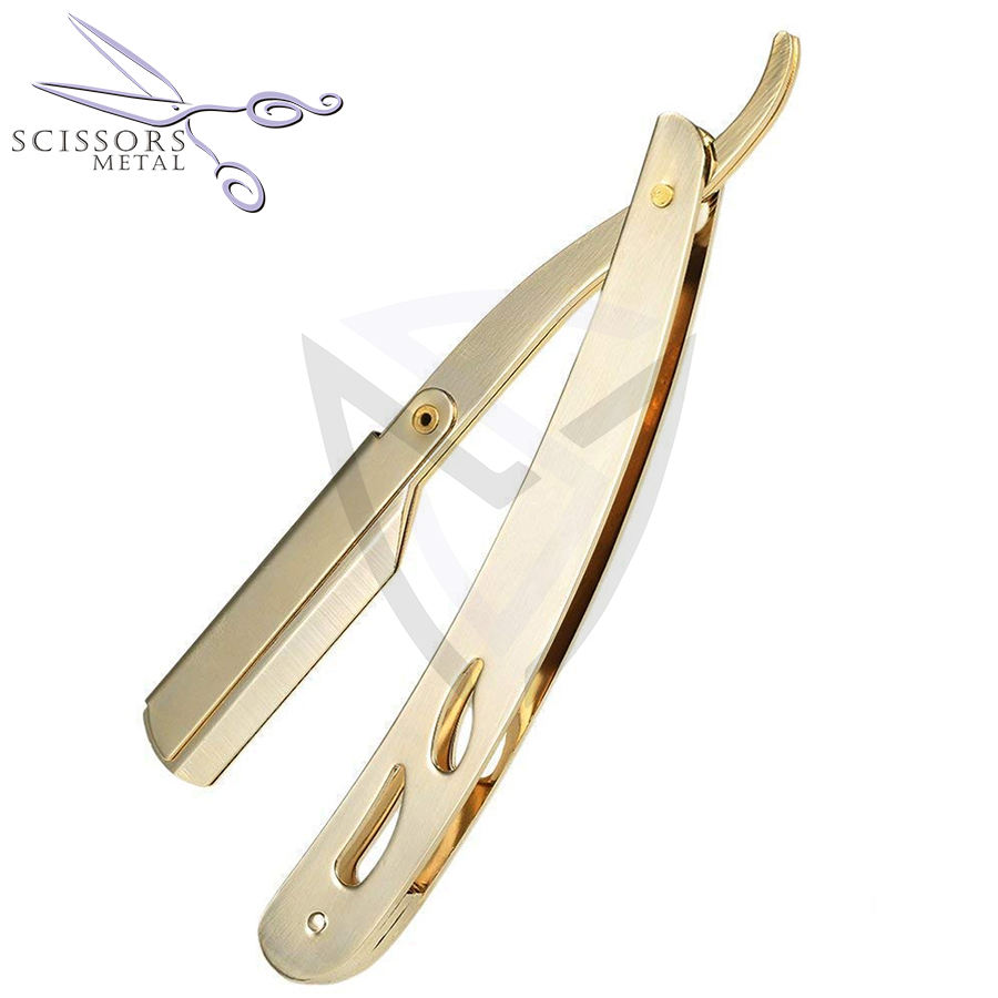 Navaja de Afeitar Recta de Acero Inoxidable, Navaja de Afeitar Plegable de un Solo Filo con Cuchillas Reemplazables