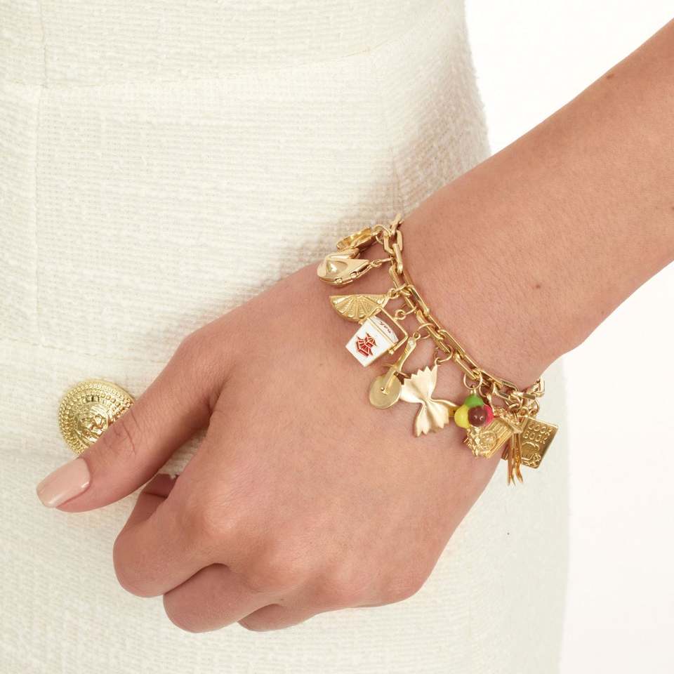 Colección de dijes de cocina de verano de acero inoxidable Chapado en oro delicado Salchicha Fruta Pizza Vino Encantos para pulsera a granel