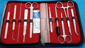 Kit de Sutura de Acero Inoxidable con Estuche de Cuero con Cierre Azul, Kit de Disección para Estudiantes de Medicina