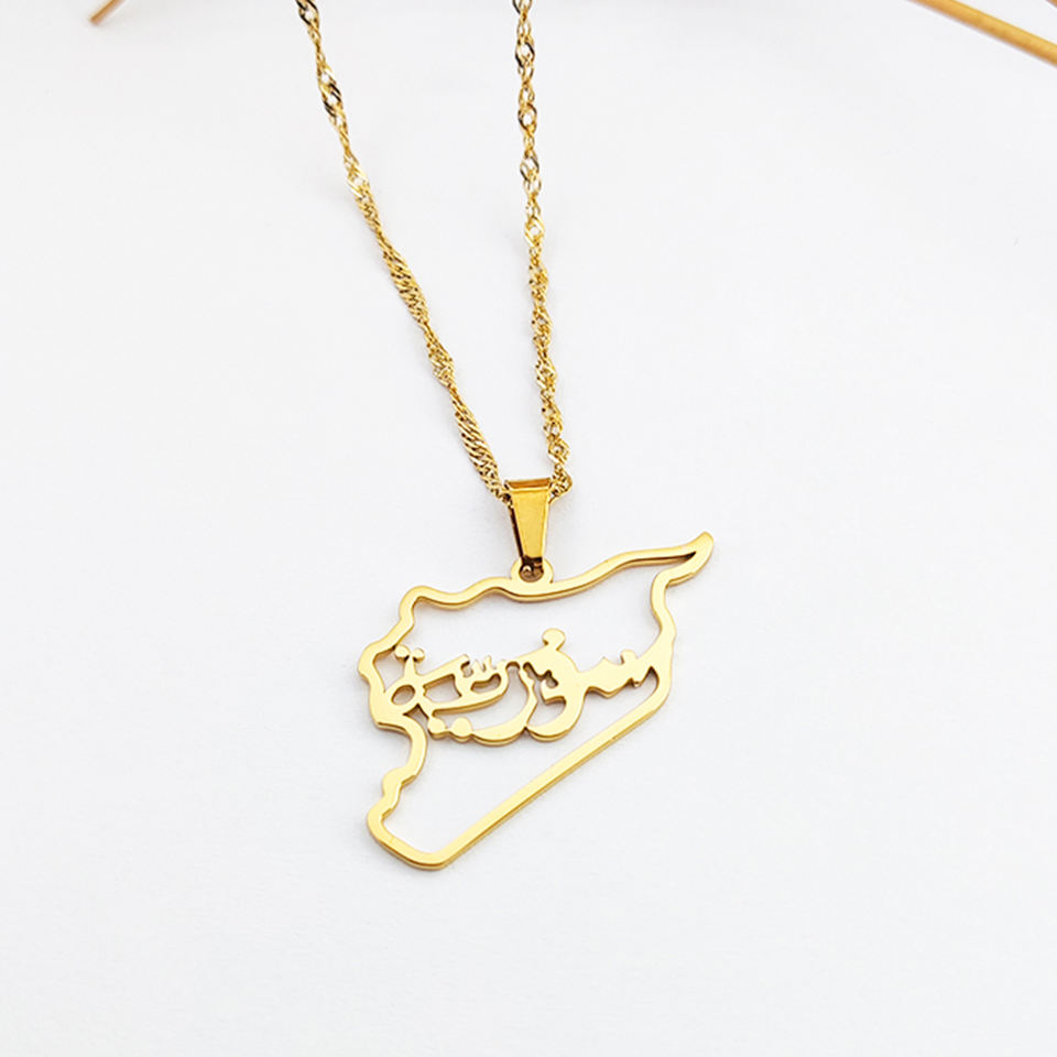 Collar con Colgante de Mapa de Siria en Acero Inoxidable, Dijes de Corazón, Collar con Mapas Sirios, Joyería de Oriente Medio, Moda, Joyería de Acero Inoxidable