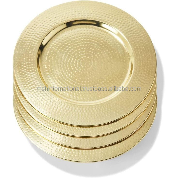 Platos de acero inoxidable para mesa, cargador de oro transparente, plato de cena Rosa plateado, cargadores redondos, artículos de servidor para platos de cena de boda